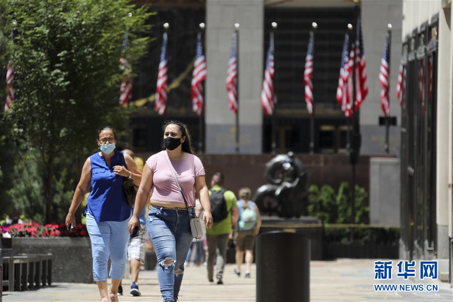 7月4日,人們戴著口罩走在美國(guó)紐約第五大道。當(dāng)日是美國(guó)獨(dú)立日,美國(guó)多地疫情仍面臨嚴(yán)峻形勢(shì)。美國(guó)約翰斯·霍普金斯大學(xué)實(shí)時(shí)統(tǒng)計(jì)數(shù)據(jù)顯示,美國(guó)累計(jì)新冠確診病例4日已超過(guò)280萬(wàn)例。新華社記者王迎攝