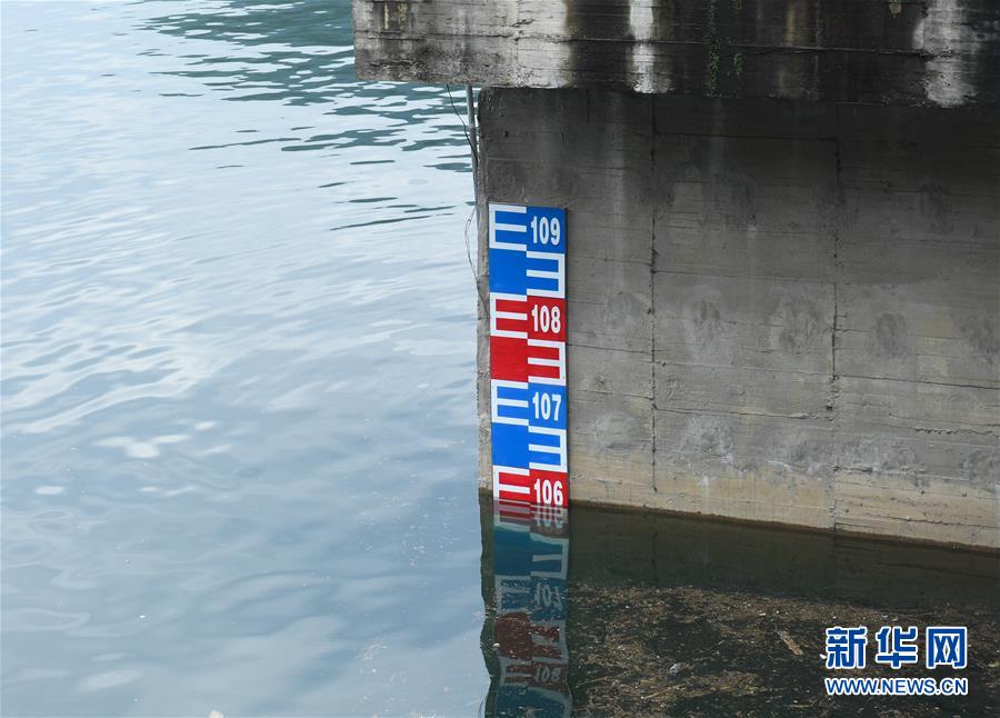 7月6日拍攝的新安江水庫的水位標尺。受連續(xù)強降雨影響,位于浙江建德的新安江水庫水位持續(xù)上漲。據浙江省水利廳發(fā)布的數據,截至7月6日14時,水庫水位上漲至106.54米,超汛限水位0.04米,且仍在上漲中。為確保水庫防洪安全、合理利用水資源,新安江水庫預計于7月7日開啟泄洪閘泄洪。新華社記者翁忻旸攝
