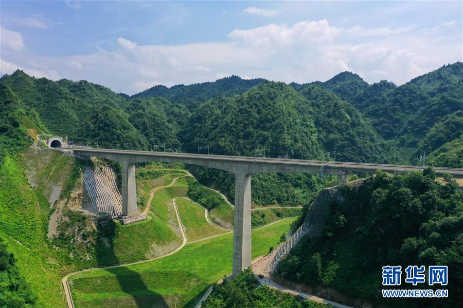 7月6日拍攝的安六鐵路彭家沖一號(hào)大橋(無人機(jī)照片)。當(dāng)日,新建貴州安六鐵路(安順至六盤水)聯(lián)調(diào)聯(lián)試工作進(jìn)入收尾階段,開通前的各項(xiàng)準(zhǔn)備工作已基本就緒。安六鐵路線路全長約125公里,設(shè)計(jì)時(shí)速250公里,為國家I級(jí)雙線客運(yùn)專線。建成投用后,貴陽至六盤水的鐵路旅行時(shí)間可從現(xiàn)在的3.5小時(shí)縮短為1小時(shí)左右,貴州省六盤水市將全面接入全國高鐵網(wǎng)。新華社記者劉續(xù)攝