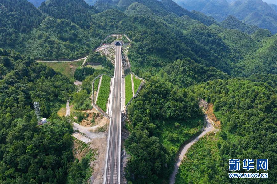 7月6日拍攝的安六鐵路彭家沖一號大橋附近的景觀(無人機(jī)照片)。當(dāng)日,新建貴州安六鐵路(安順至六盤水)聯(lián)調(diào)聯(lián)試工作進(jìn)入收尾階段,開通前的各項準(zhǔn)備工作已基本就緒。安六鐵路線路全長約125公里,設(shè)計時速250公里,為國家I級雙線客運專線。建成投用后,貴陽至六盤水的鐵路旅行時間可從現(xiàn)在的3.5小時縮短為1小時左右,貴州省六盤水市將全面接入全國高鐵網(wǎng)。新華社記者劉續(xù)攝