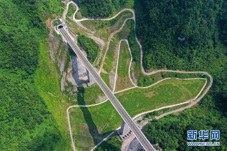 7月6日拍攝的安六鐵路彭家沖一號大橋(無人機照片)。當日,新建貴州安六鐵路(安順至六盤水)聯(lián)調(diào)聯(lián)試工作進入收尾階段,開通前的各項準備工作已基本就緒。安六鐵路線路全長約125公里,設計時速250公里,為國家I級雙線客運專線。建成投用后,貴陽至六盤水的鐵路旅行時間可從現(xiàn)在的3.5小時縮短為1小時左右,貴州省六盤水市將全面接入全國高鐵網(wǎng)。新華社記者劉續(xù)攝