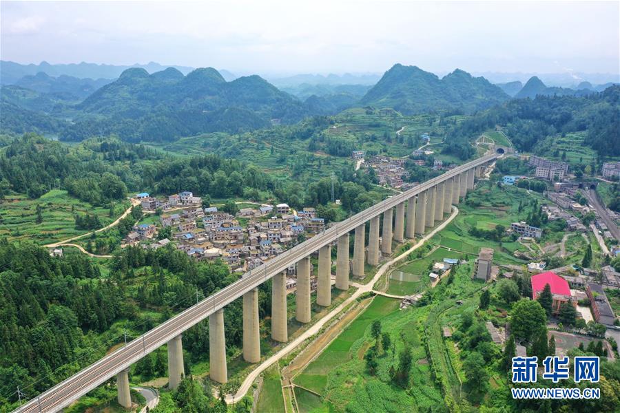 7月6日拍攝的安六鐵路岱港村特大橋(無人機(jī)照片)。當(dāng)日,新建貴州安六鐵路(安順至六盤水)聯(lián)調(diào)聯(lián)試工作進(jìn)入收尾階段,開通前的各項(xiàng)準(zhǔn)備工作已基本就緒。安六鐵路線路全長(zhǎng)約125公里,設(shè)計(jì)時(shí)速250公里,為國(guó)家I級(jí)雙線客運(yùn)專線。建成投用后,貴陽(yáng)至六盤水的鐵路旅行時(shí)間可從現(xiàn)在的3.5小時(shí)縮短為1小時(shí)左右,貴州省六盤水市將全面接入全國(guó)高鐵網(wǎng)。新華社記者劉續(xù)攝