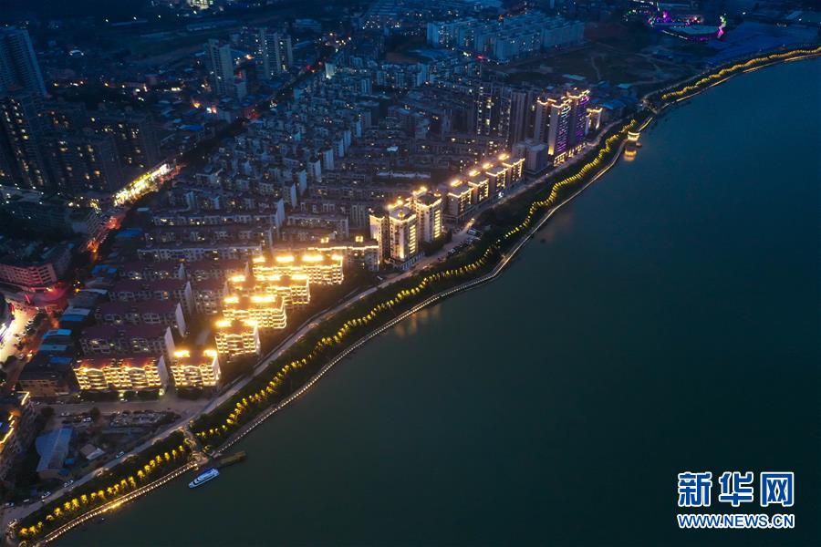 這是融安縣城一處夜景(7月7日攝,無人機(jī)照片)。夏夜的廣西融安縣城燈火璀璨,景色迷人。新華社記者張愛林?jǐn)z