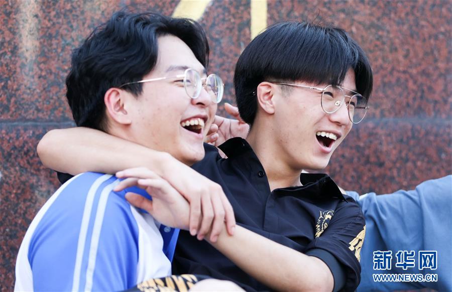 7月8日,在吉林省長春市第八中學(xué)考點(diǎn)門口,考生慶祝高考結(jié)束。當(dāng)日,全國部分地區(qū)2020年高考結(jié)束。新華社發(fā)(顏麟蘊(yùn)攝)