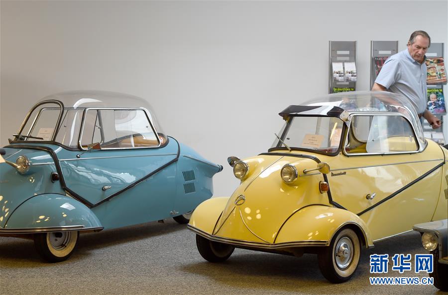 7月8日,一名男子在奧地利弗森多夫舉行的“迷你”老爺車展上參觀。新華社記者郭晨攝