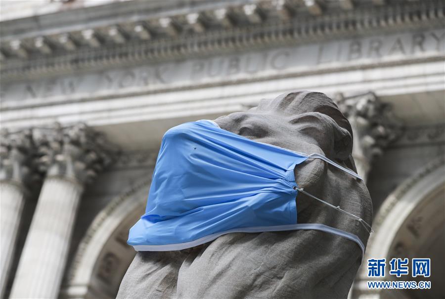 這是7月8日在美國(guó)紐約公共圖書(shū)館前拍攝的“戴”口罩的石獅子。美國(guó)約翰斯·霍普金斯大學(xué)8日發(fā)布的新冠疫情最新統(tǒng)計(jì)數(shù)據(jù)顯示,美國(guó)累計(jì)確診病例超過(guò)300萬(wàn)例。數(shù)據(jù)顯示,截至美國(guó)東部時(shí)間8日11時(shí)34分(北京時(shí)間23時(shí)34分),美國(guó)累計(jì)確診病例3016515例,累計(jì)死亡病例131594例。新華社記者王迎攝