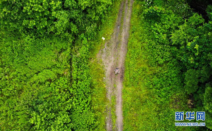 7月8日,董紅雨在迎春林業(yè)局有限公司施業(yè)區(qū)內(nèi)進(jìn)行野生東北虎信息搜集和巡護(hù)工作(無人機照片)。
