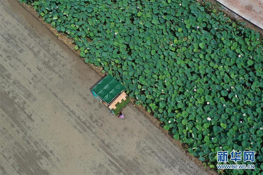 7月11日,在湖南省衡陽市衡陽縣臺源鎮(zhèn)臺九村,村民準備使用插秧機插播晚稻秧苗(無人機照片)。近日,湖南各地農(nóng)村陸續(xù)進入“雙搶”季,農(nóng)民緊抓農(nóng)時,搶收搶種,力爭糧食穩(wěn)產(chǎn)豐收。新華社記者趙眾志攝