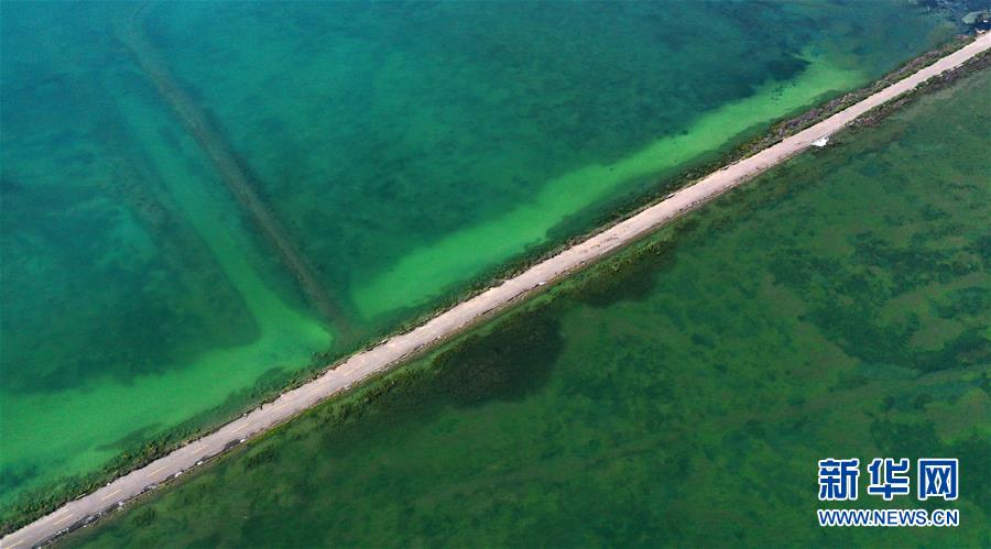 7月10日拍攝的青海湖畔風(fēng)光(無人機(jī)照片)。盛夏時(shí)節(jié),被譽(yù)為“中國最美湖泊”的青海湖畔景色宜人,藍(lán)天、白云、湖水與草原組成一幅壯美的畫卷。新華社記者 張宏祥 攝