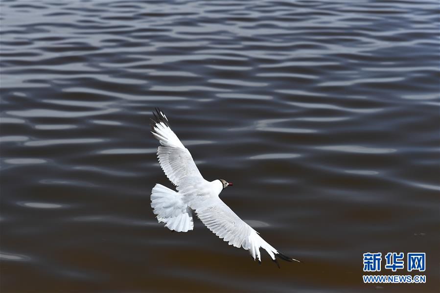 7月10日,一只棕頭鷗從青海湖湖面上飛過。盛夏時(shí)節(jié),被譽(yù)為“中國最美湖泊”的青海湖畔景色宜人,藍(lán)天、白云、湖水與草原組成一幅壯美的畫卷。新華社記者 張宏祥 攝