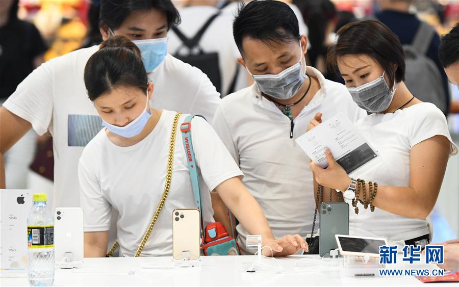 7月12日,游客在海口日月廣場免稅店選購電子產(chǎn)品。