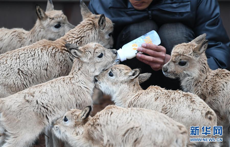 7月7日,三江源國家公園管理局長江源園區(qū)可可西里管理處卓乃湖保護(hù)站的工作人員才文多杰在給藏羚羊幼仔喂奶。新華社記者 薛玉斌 攝