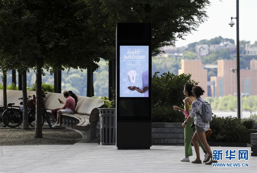 7月14日,在美國紐約一家尚未恢復(fù)店內(nèi)購物的購物中心外,電子屏介紹正確洗手的方式。美國約翰斯·霍普金斯大學(xué):截至北京時(shí)間15日6時(shí)34分,全球新冠確診病例達(dá)13258016例,死亡病例為576752例。美國是全球疫情最嚴(yán)重的國家,確診病例達(dá)3416222例,死亡病例為136319例。新華社記者 王迎 攝
