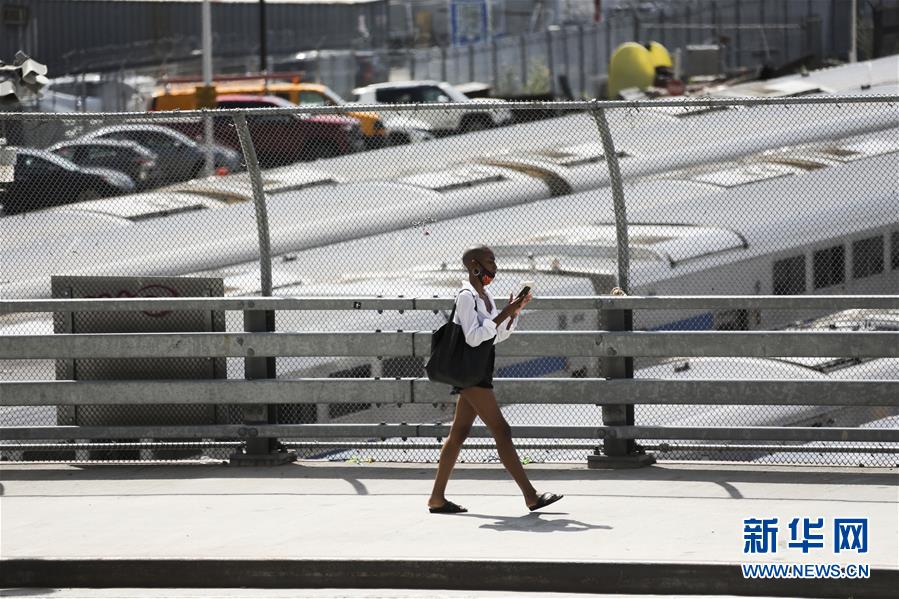 7月14日,戴口罩的女子走在美國紐約街頭。美國約翰斯·霍普金斯大學(xué):截至北京時(shí)間15日6時(shí)34分,全球新冠確診病例達(dá)13258016例,死亡病例為576752例。美國是全球疫情最嚴(yán)重的國家,確診病例達(dá)3416222例,死亡病例為136319例。新華社記者 王迎 攝