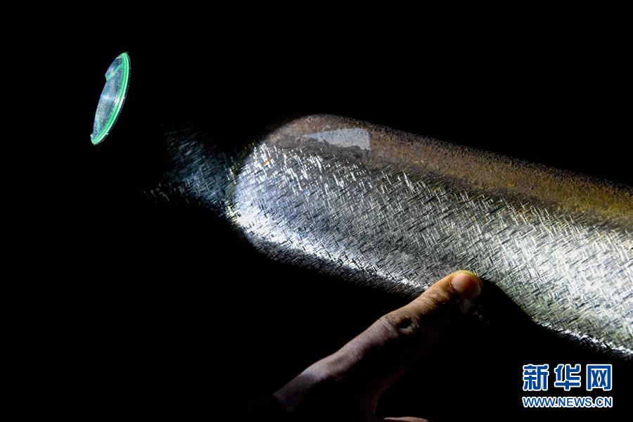 技術員查看打磨后的鋼軌(7月14日攝)。新華社記者 丁磊 攝