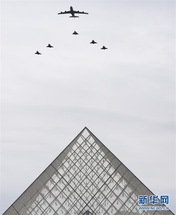7月14日,在法國巴黎舉行的國慶閱兵式上,法國空軍飛機(jī)飛過盧浮宮玻璃金字塔。新華社記者高靜攝