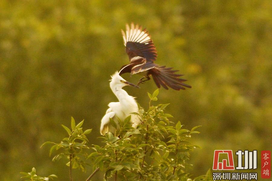 山東青島“鷺舞”林間 宛如一幅寫意山水畫