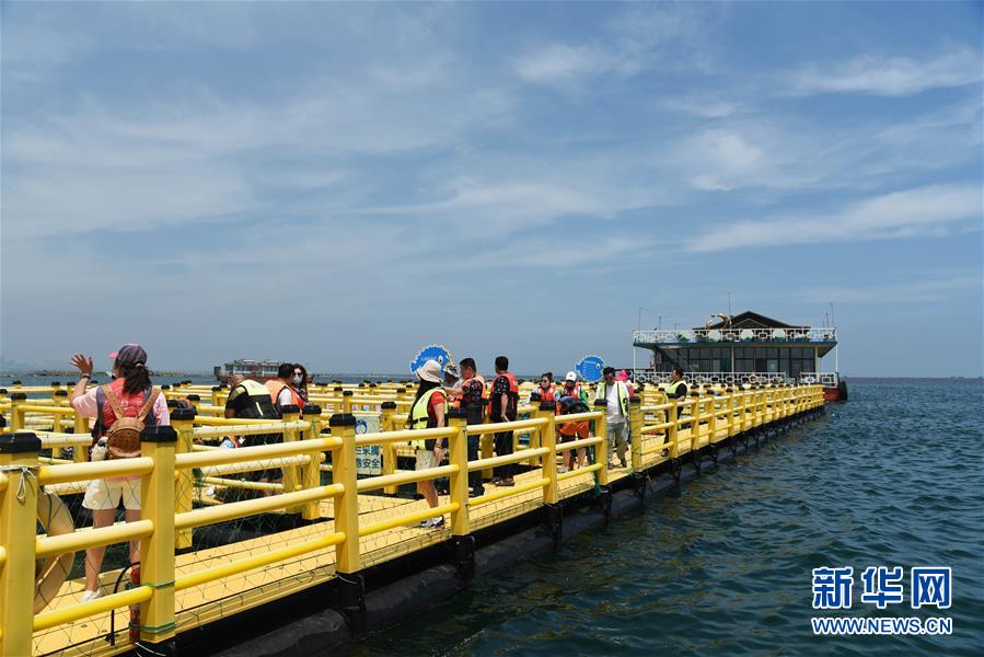 7月17日,游客在榮成桑溝灣泓泰國家級海洋牧場觀光體驗。近年來,山東省榮成市重點發(fā)展特色海洋旅游產(chǎn)業(yè),打造眾多國家級海洋牧場,保留修復(fù)傳統(tǒng)海草民居,吸引游客前來觀光體驗。如今特色海洋旅游已逐漸成為榮成經(jīng)濟發(fā)展新的增長點。新華社記者王凱攝