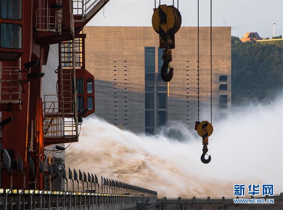 7月19日,三峽樞紐開啟泄洪深孔泄洪。19日20時,三峽水庫入庫流量4.6萬立方米/秒,較本輪洪水的峰值6.1萬立方米/秒下降了1.5萬立方米/秒?!伴L江2020年第2號洪水”平穩(wěn)通過三峽大壩。新華社記者肖藝九攝