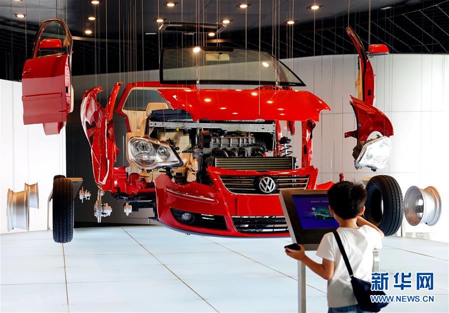 7月19日,一名小朋友在參觀了解汽車的部件組成。暑假期間,不少市民和游客來(lái)到上海汽車博物館參觀,感受汽車文化魅力。新華社記者劉穎攝