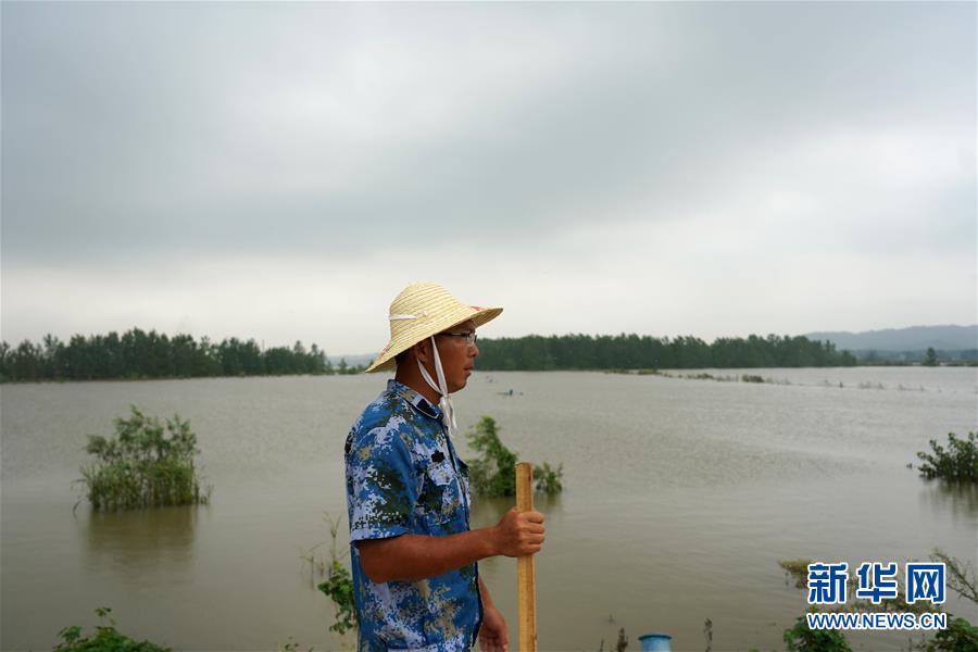 劉良武在江洲鎮(zhèn)的長(zhǎng)江堤壩上巡查(7月19日攝)。新華社記者周密攝