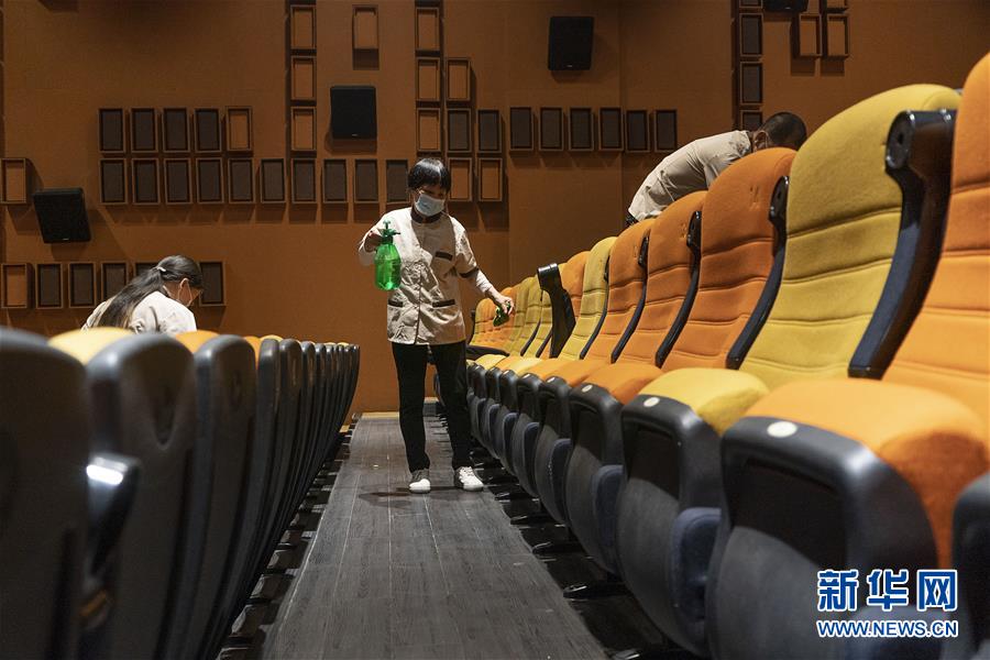 7月20日,武漢一家影院工作人員開展消殺作業(yè)。當(dāng)日,在各項疫情防控措施有效落實到位的前提下,武漢市部分電影院恢復(fù)開放。新華社記者肖藝九攝