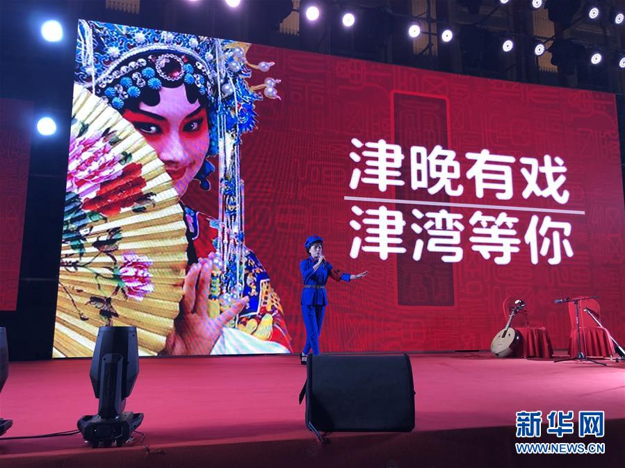 京劇愛好者在天津津?yàn)硰V場(chǎng)表演經(jīng)典京劇唱段(7月19日手機(jī)拍攝)。新華社記者宋瑞攝