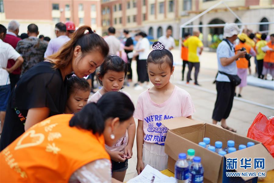 村民在江西鄱陽縣五一中心學校安置點領(lǐng)取物資(7月9日攝)。新華社記者周密攝