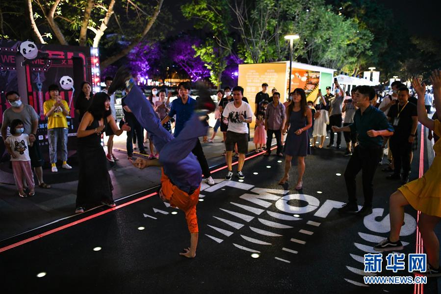 7月23日晚,在成都市成華區(qū)望平街濱河路的天府文創(chuàng)大集市上,游人在文化墻前錄制視頻。近日,天府文創(chuàng)大集市活動(dòng)在成都全市范圍內(nèi)開展,以成都原創(chuàng)IP為主的優(yōu)秀文創(chuàng)產(chǎn)品集體亮相夜幕下的成都街頭。據(jù)了解,本次天府文創(chuàng)大集市共分為七個(gè)會(huì)場(chǎng),以“讀書、納涼、賞文創(chuàng)——盛夏中的新消費(fèi)”為主題,將持續(xù)到7月26日。新華社記者 王曦 攝