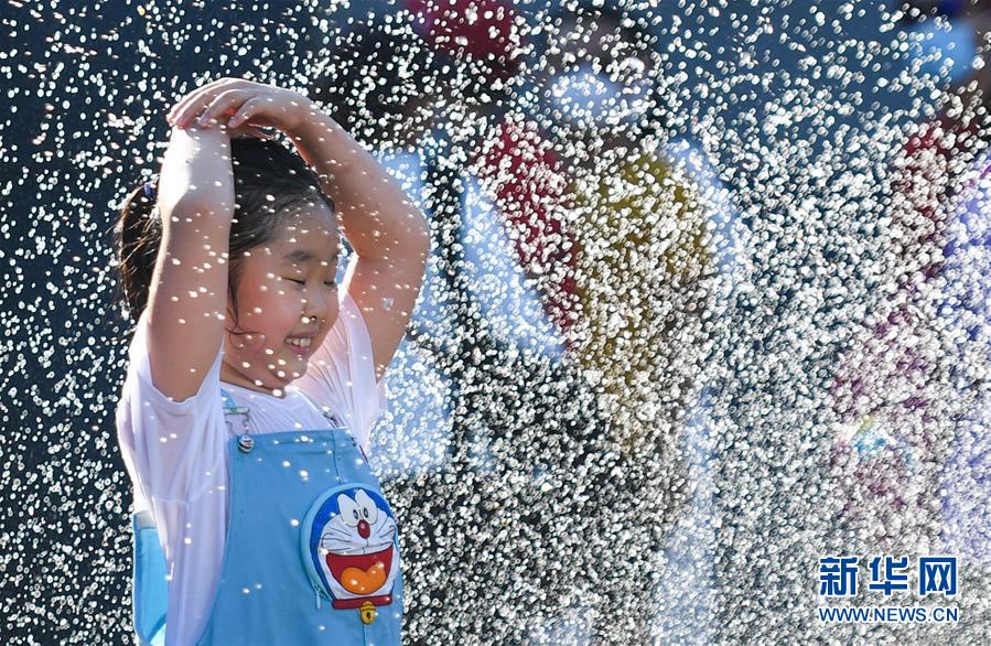 7月24日,一名小女孩在北京華熙LIVE·五棵松商業(yè)街區(qū)的一處噴泉戲水。北京市氣象局7月24日傍晚發(fā)布稱,24日截至16時30分,平原大部分地區(qū)出現(xiàn)37℃以上高溫天氣,局地氣溫超過40℃。北京市已于23日發(fā)布高溫藍色預警,預計25日全市大部分地區(qū)日最高氣溫仍將達35℃以上。新華社記者陳曄華攝