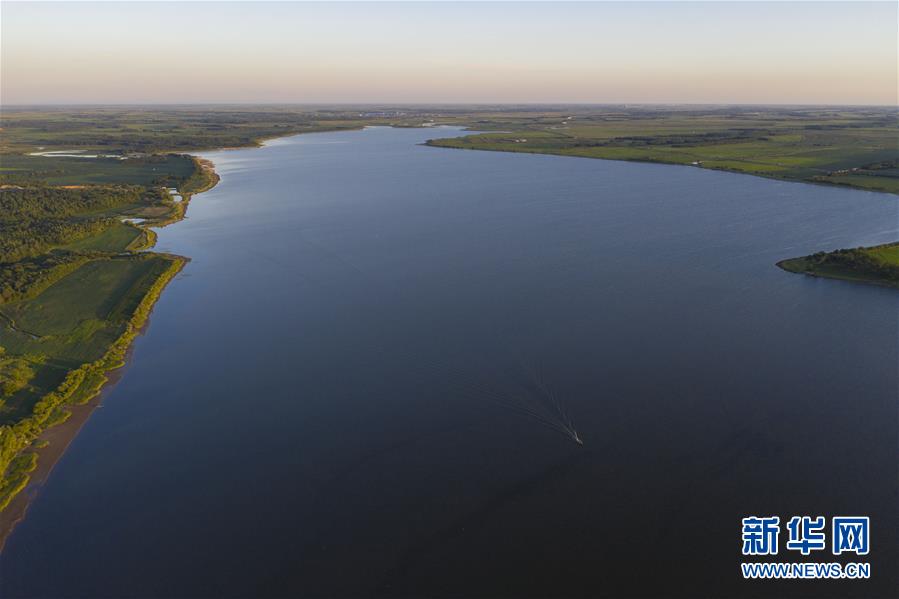 7月24日,漁民在大力加湖中捕魚(無人機(jī)照片)。大力加湖位于“中國東極”黑龍江省撫遠(yuǎn)市,面積28.5平方公里,兩岸地勢低平,多濕地、草原,湖內(nèi)水產(chǎn)豐富。夏日傍晚時分,漁民捕魚歸來,美麗畫卷映入眼簾。新華社記者謝劍飛攝