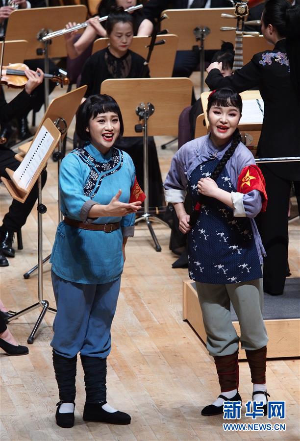 7月25日晚,演員在音樂(lè)會(huì)版歌劇《洪湖赤衛(wèi)隊(duì)》中表演。當(dāng)日,湖北省歌劇舞劇院攜湖北交響樂(lè)團(tuán)亮相上海交響樂(lè)團(tuán)音樂(lè)廳,為2020上海夏季音樂(lè)節(jié)獻(xiàn)上一臺(tái)音樂(lè)會(huì)版歌劇《洪湖赤衛(wèi)隊(duì)》。新華社記者 任瓏 攝