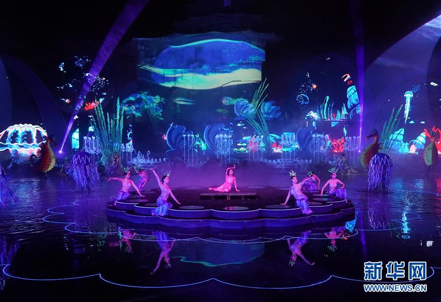 7月26日,演員在《浪淘沙·北戴河》彩排中。近日,河北省秦皇島市北戴河文化旅游新名片——大型實景秀《浪淘沙·北戴河》進行新一輪的排練,準備接待游客。新華社記者 楊世堯 攝