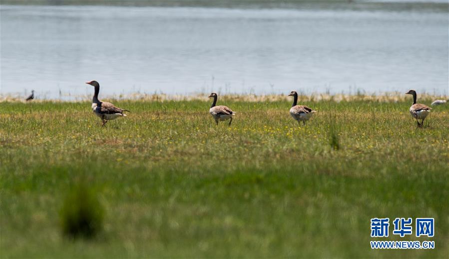 7月28日,灰雁和遺鷗在桃力廟—阿拉善灣海子覓食。鄂爾多斯?jié)竦匚挥趲?kù)布齊沙漠、毛烏素沙地接壤地帶,2002年被列入國(guó)際重要濕地名錄。從2006年開(kāi)始,由于濕地湖面萎縮、湖心島消失,在此筑巢繁殖的世界瀕危物種遺鷗幾近消失。近年來(lái),當(dāng)?shù)夭扇《喾N治理措施,濕地生態(tài)環(huán)境逐步好轉(zhuǎn)。2019年起,濕地內(nèi)的桃力廟—阿拉善灣海子迎來(lái)遺鷗大規(guī)模“回歸”。如今,40多種鳥(niǎo)類在此棲息,鄂爾多斯?jié)竦刂匦鲁蔀轼B(niǎo)類的樂(lè)園。新華社記者彭源攝