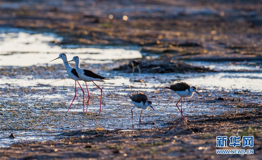 7月28日,長腳鷸在桃力廟—阿拉善灣海子覓食。鄂爾多斯?jié)竦匚挥趲觳箭R沙漠、毛烏素沙地接壤地帶,2002年被列入國際重要濕地名錄。從2006年開始,由于濕地湖面萎縮、湖心島消失,在此筑巢繁殖的世界瀕危物種遺鷗幾近消失。近年來,當(dāng)?shù)夭扇《喾N治理措施,濕地生態(tài)環(huán)境逐步好轉(zhuǎn)。2019年起,濕地內(nèi)的桃力廟—阿拉善灣海子迎來遺鷗大規(guī)模“回歸”。如今,40多種鳥類在此棲息,鄂爾多斯?jié)竦刂匦鲁蔀轼B類的樂園。新華社記者連振攝