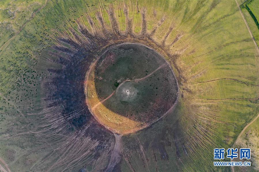 這是在烏蘭哈達火山群拍攝的一處火山口(7月29日攝,無人機照片)。新華社記者劉磊攝