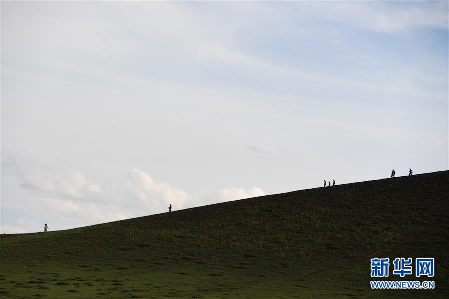 7月29日,游客在烏蘭哈達火山地質(zhì)公園游玩。新華社記者劉磊攝