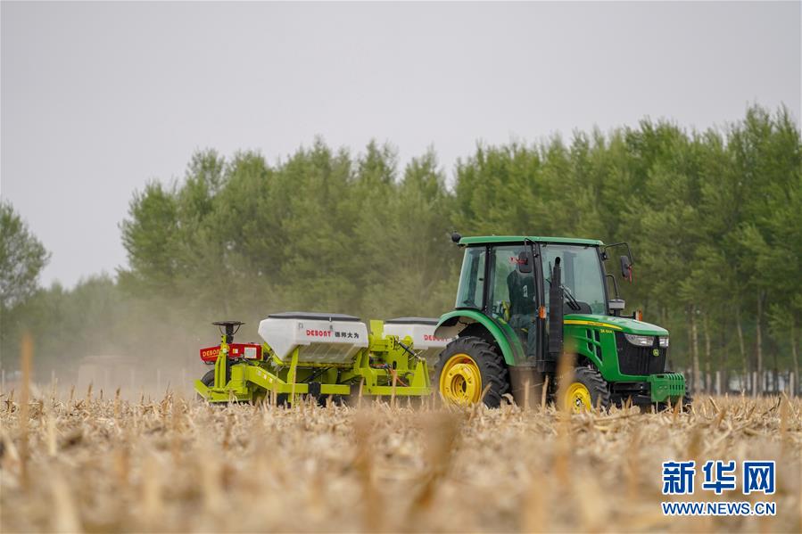 5月7日,在吉林省梨樹(shù)縣,農(nóng)民駕駛免耕播種機(jī)播種玉米。新華社記者張楠攝