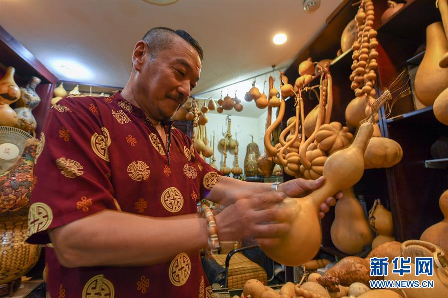 8月5日,侯景偉打磨葫蘆外皮。今年55歲的吉林四平人侯景偉自幼與家人學習雕刻、烙畫藝術。經過多年潛心研究,他將浮雕和烙畫工藝相結合,通過拋光、起稿、雕刻、烙燙、套色等十余道工藝,制作展現(xiàn)傳統(tǒng)文化、民俗故事的葫蘆工藝品。2020年,侯景偉被評為四平市非物質文化遺產項目侯氏葫蘆雕刻烙畫代表性傳承人。他說:“希望有更多人加入到非遺傳承隊伍中,讓小葫蘆‘講’出更多民俗故事。”新華社記者張楠攝