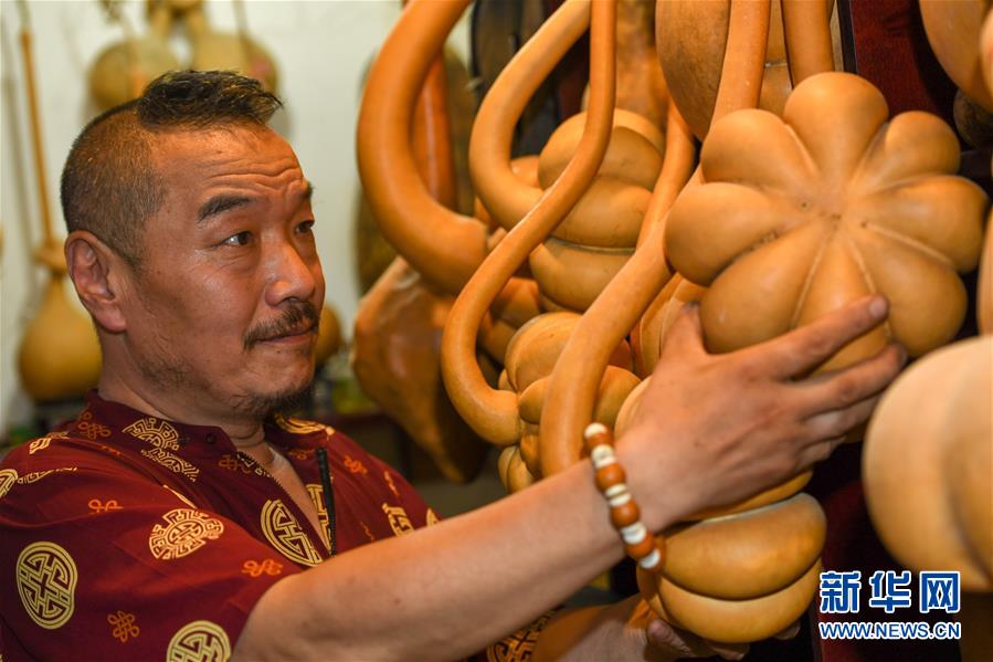 8月5日,侯景偉挑選適合創(chuàng)作的葫蘆。今年55歲的吉林四平人侯景偉自幼與家人學習雕刻、烙畫藝術(shù)。經(jīng)過多年潛心研究,他將浮雕和烙畫工藝相結(jié)合,通過拋光、起稿、雕刻、烙燙、套色等十余道工藝,制作展現(xiàn)傳統(tǒng)文化、民俗故事的葫蘆工藝品。2020年,侯景偉被評為四平市非物質(zhì)文化遺產(chǎn)項目侯氏葫蘆雕刻烙畫代表性傳承人。他說:“希望有更多人加入到非遺傳承隊伍中,讓小葫蘆‘講’出更多民俗故事?!毙氯A社記者張楠攝