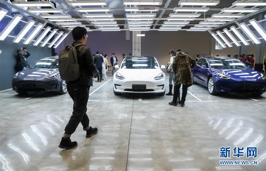 這是1月7日在特斯拉上海超級(jí)工廠拍攝的中國(guó)制造Model3汽車。新華社記者方喆攝