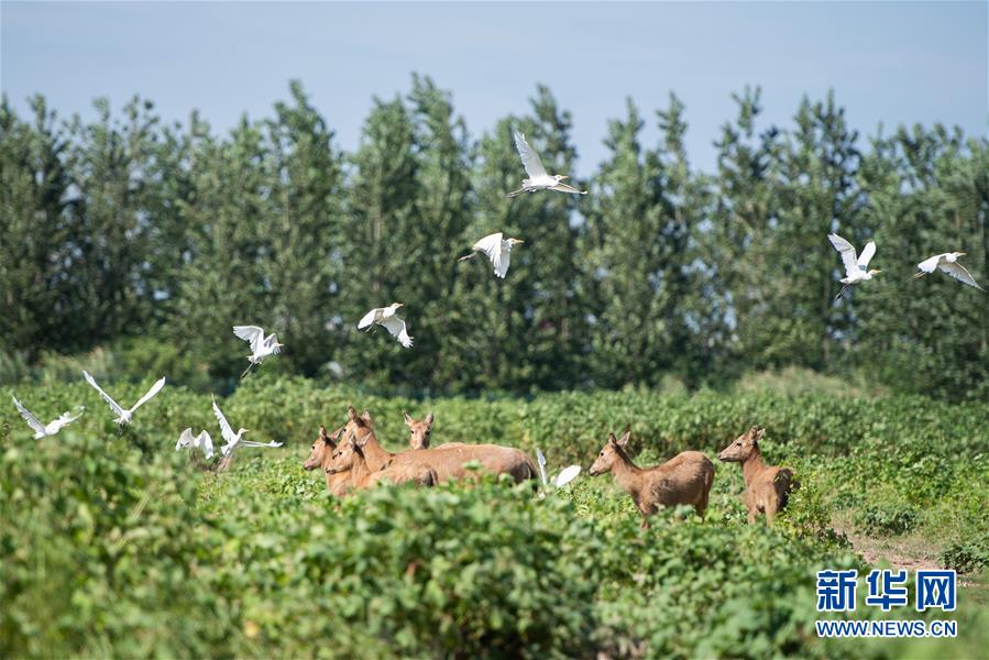 這是8月7日在東洞庭湖麋鹿和鳥類救治避難中心拍攝的麋鹿和飛鳥。位于湖南省岳陽市的東洞庭湖麋鹿和鳥類救治避難中心成立于2016年9月,占地400余畝,中心自建成后就承擔(dān)起東洞庭湖區(qū)域全部麋鹿的救援、醫(yī)治、康復(fù)和喂養(yǎng)任務(wù)。目前該中心共有14只麋鹿正在接受救助。新華社記者陳思汗攝
