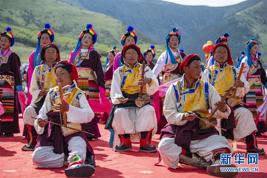 8月7日,在西藏首屆弦子舞展演現(xiàn)場,演出人員在表演弦子舞。當(dāng)日,西藏首屆弦子舞展演在昌都市芒康縣舉行。眾多演員同臺獻藝,表演國家級非物質(zhì)文化遺產(chǎn)弦子舞,吸引西藏各地的群眾前來觀看。新華社記者孫非攝