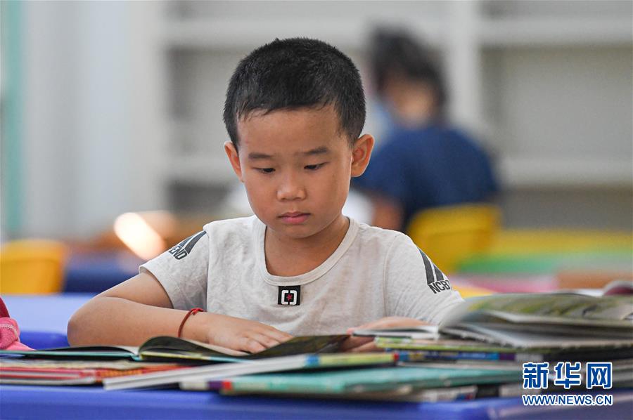 8月8日,小朋友在位于海口的海南省圖書館閱讀書籍。暑假期間,許多小朋友來(lái)到海南省圖書館閱讀書籍,在書香中度過(guò)快樂(lè)暑假。新華社記者 蒲曉旭 攝