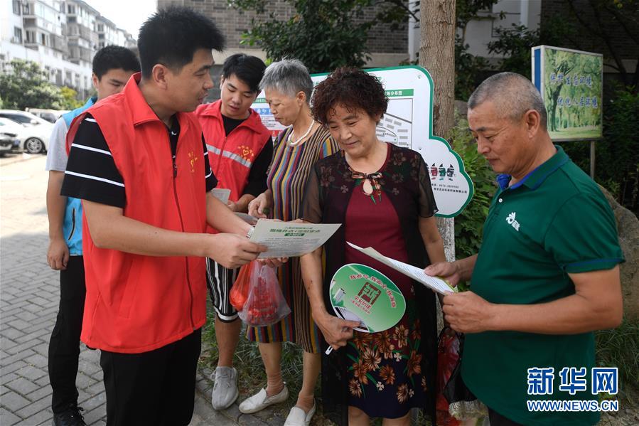 8月9日,湖州市吳興區(qū)八里店鎮(zhèn)志愿者(左)在百合苑小區(qū)向居民介紹生活垃圾定點(diǎn)投放的注意事項(xiàng)。近年來,浙江省通過創(chuàng)新宣傳教育,多措并舉促進(jìn)垃圾分類投放、收運(yùn)及處置的良性循環(huán),引領(lǐng)垃圾分類成為城鄉(xiāng)居民的生活新風(fēng)尚。新華社記者黃宗治攝。
