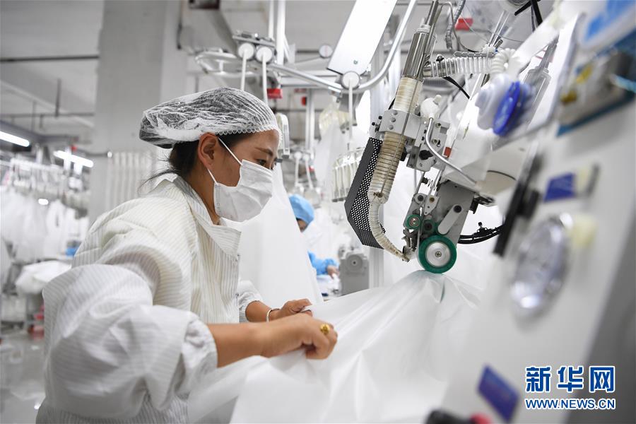 8月9日,甘肅拓奇扶貧車間的員工在服裝加工生產(chǎn)線上作業(yè)。甘肅拓奇扶貧車間位于甘肅省臨夏回族自治州積石山縣,是依托東西部扶貧協(xié)作平臺引進(jìn)的服裝加工企業(yè)。扶貧車間建成投產(chǎn)以來帶動就業(yè)近300人,其中吸納建檔立卡貧困戶就業(yè)110人,實(shí)現(xiàn)了貧困群眾就地就近就業(yè)增收的目的,為助推當(dāng)?shù)孛撠毠?jiān)及縣域經(jīng)濟(jì)發(fā)展發(fā)揮了重要作用。新華社記者邢廣利攝。