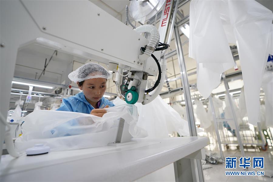 8月9日,甘肅拓奇扶貧車間的員工在服裝加工生產(chǎn)線上作業(yè)。甘肅拓奇扶貧車間位于甘肅省臨夏回族自治州積石山縣,是依托東西部扶貧協(xié)作平臺引進的服裝加工企業(yè)。扶貧車間建成投產(chǎn)以來帶動就業(yè)近300人,其中吸納建檔立卡貧困戶就業(yè)110人,實現(xiàn)了貧困群眾就地就近就業(yè)增收的目的,為助推當(dāng)?shù)孛撠毠约翱h域經(jīng)濟發(fā)展發(fā)揮了重要作用。新華社記者邢廣利攝。