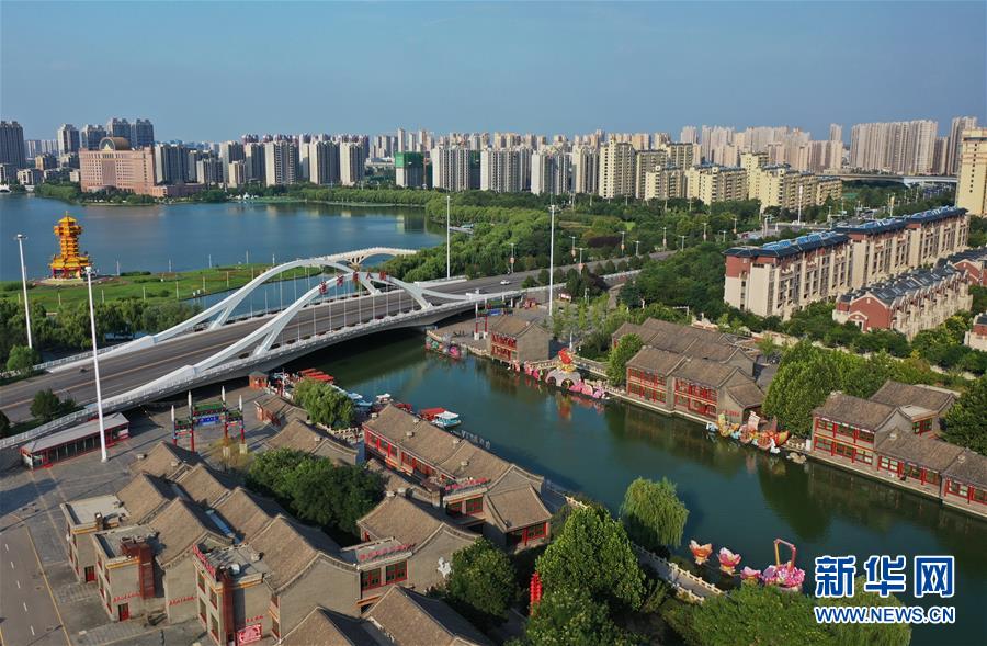 8月9日拍攝的唐山市豐南區(qū)唐津運(yùn)河景色(無人機(jī)照片)。近年來,河北省唐山市豐南區(qū)全力推動“全域治水、清水潤城”工程,形成了以唐津運(yùn)河、人民公園生態(tài)廊道等以健身、休閑、旅游功能于一體的人水相親、城水相依的景觀環(huán)境,為綠色發(fā)展注入活力。新華社記者楊世堯攝。