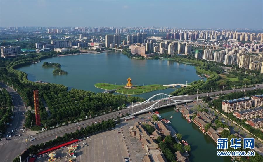 8月9日拍攝的唐山市豐南區(qū)惠豐湖景色(無人機(jī)照片)。近年來,河北省唐山市豐南區(qū)全力推動(dòng)“全域治水、清水潤(rùn)城”工程,形成了以唐津運(yùn)河、人民公園生態(tài)廊道等以健身、休閑、旅游功能于一體的人水相親、城水相依的景觀環(huán)境,為綠色發(fā)展注入活力。新華社記者楊世堯攝。
