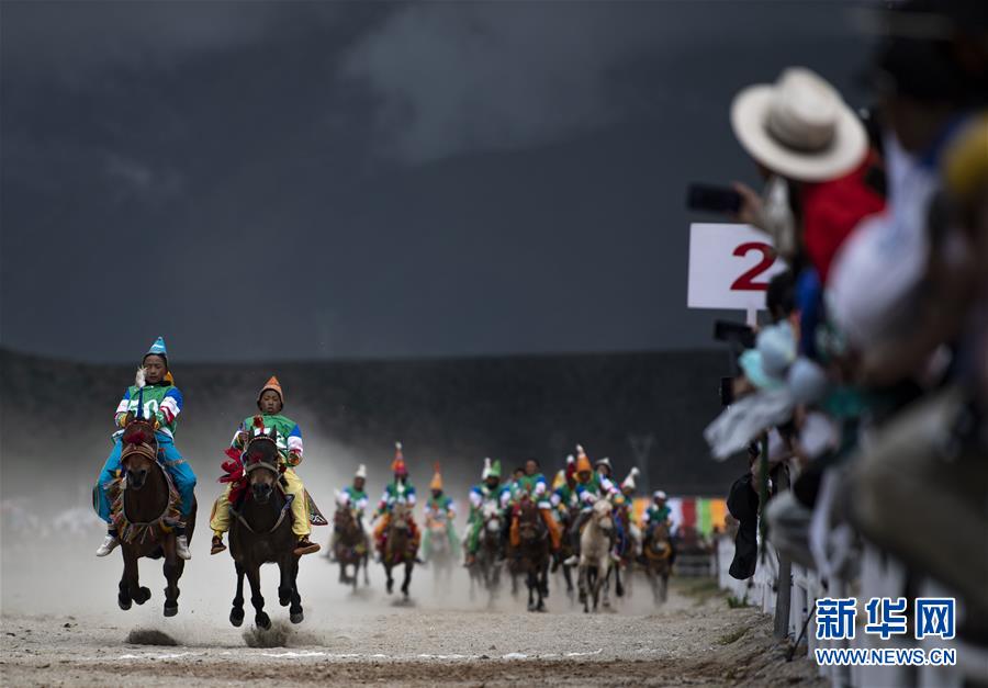 8月10日,騎手馳騁在當(dāng)雄縣賽馬場。新華社記者普布扎西攝。